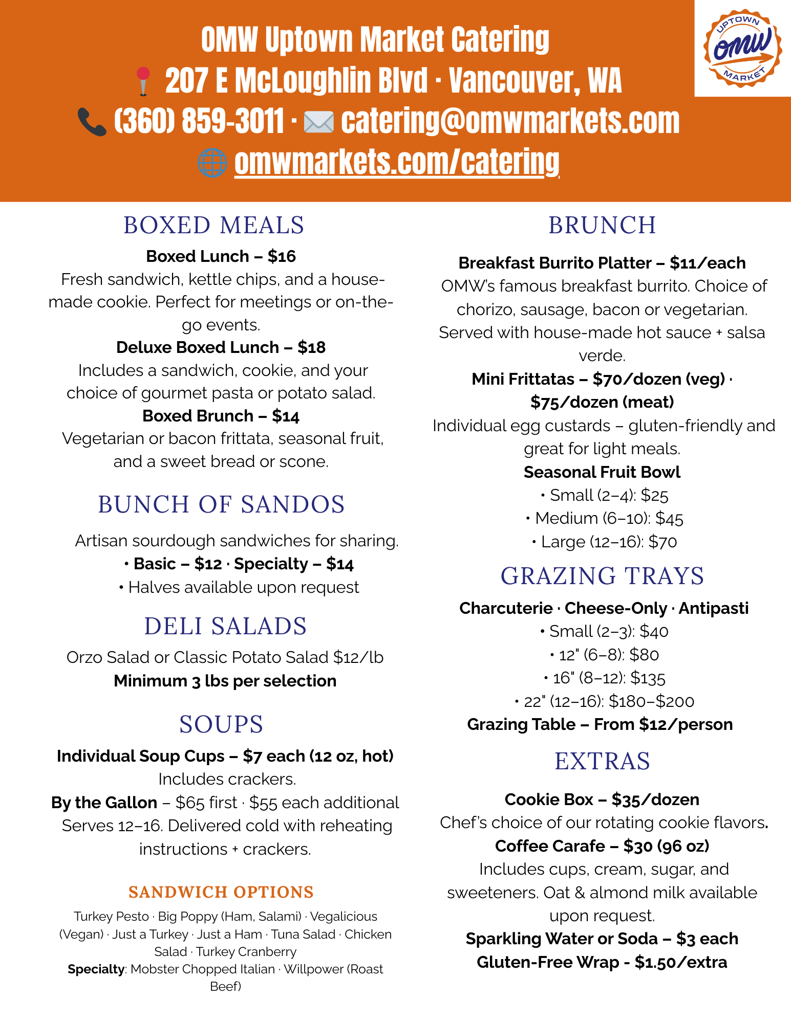 Elevate your next event and impress even your toughest critics (yes, even your MIL!). Let OMW Uptown Market make your gathering memorable.